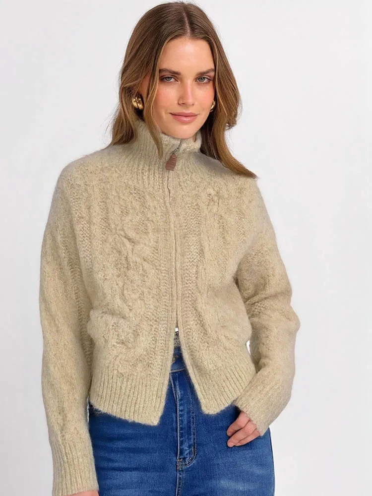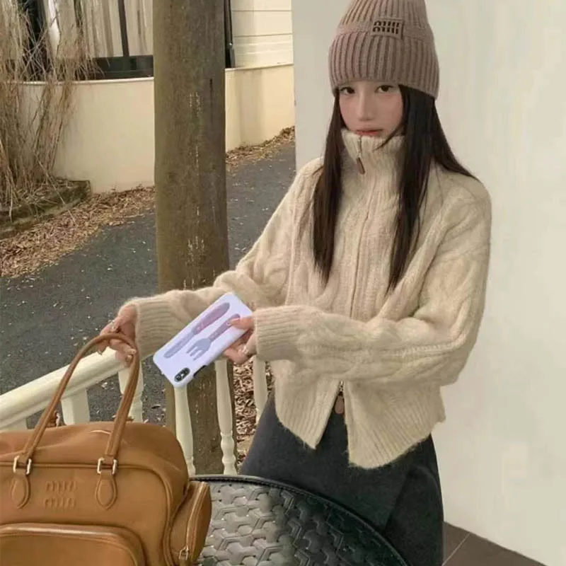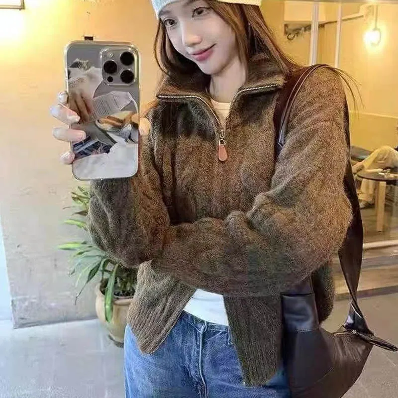 Retro Lazy Atmosphere – Double Zipper Women’s Knitted Cardigan