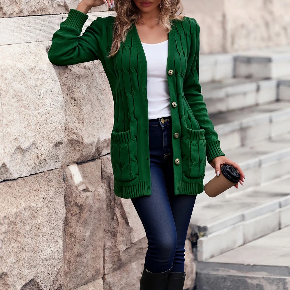 Women Long Sleeve Knitted Cardigan Single Breasted