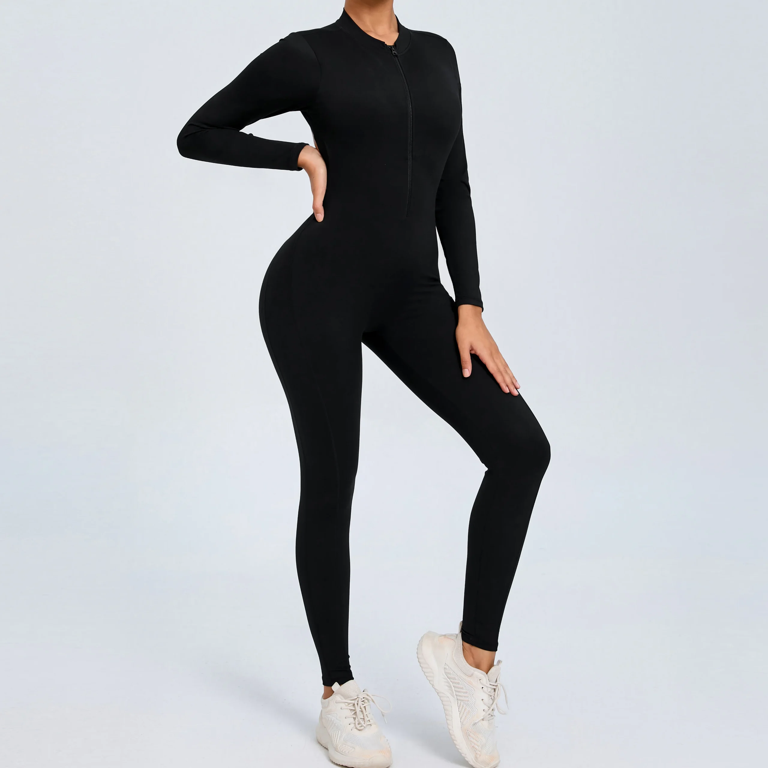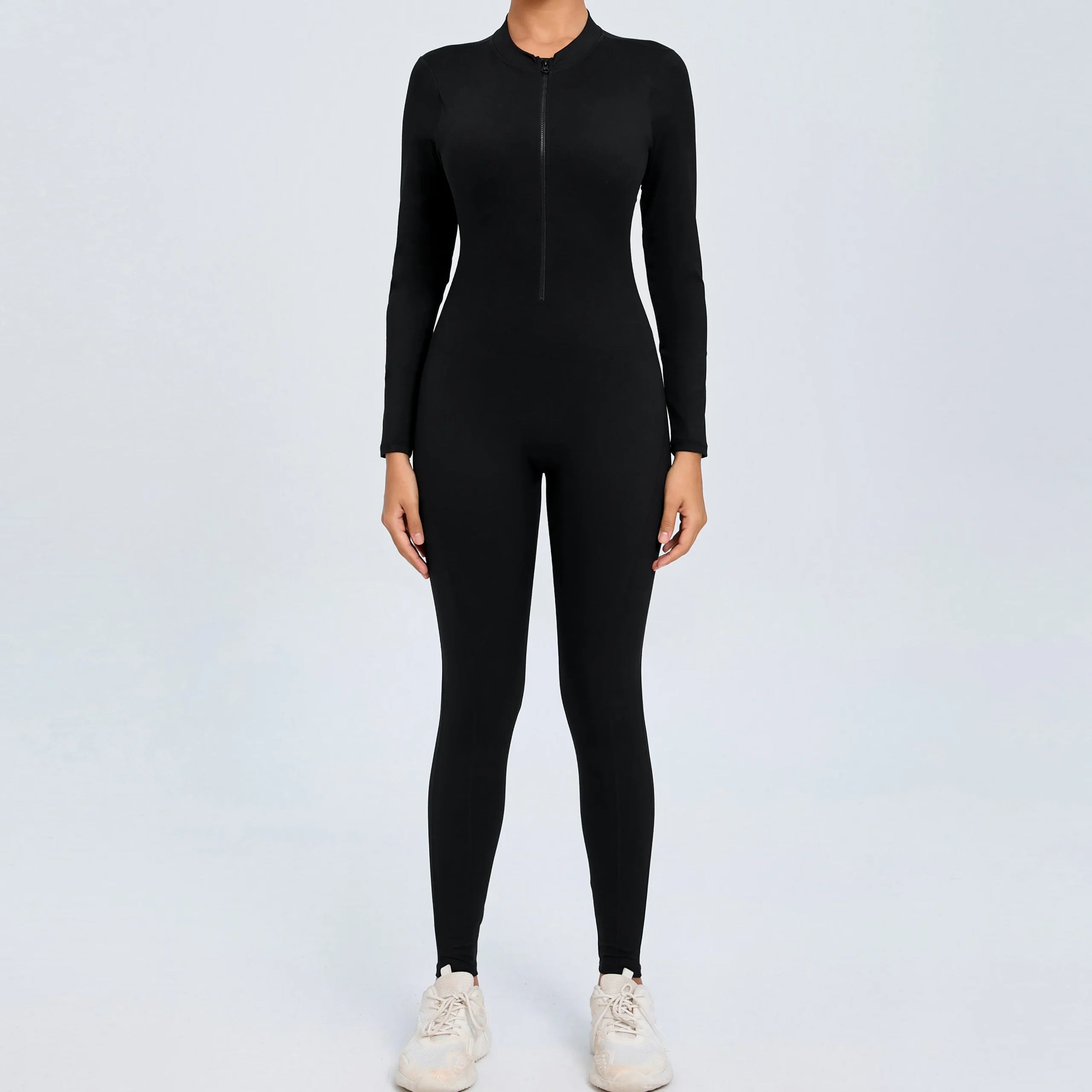 Women Sportwear Yoga Jumpsuit Zip Long Sleeve Back Open Outfit