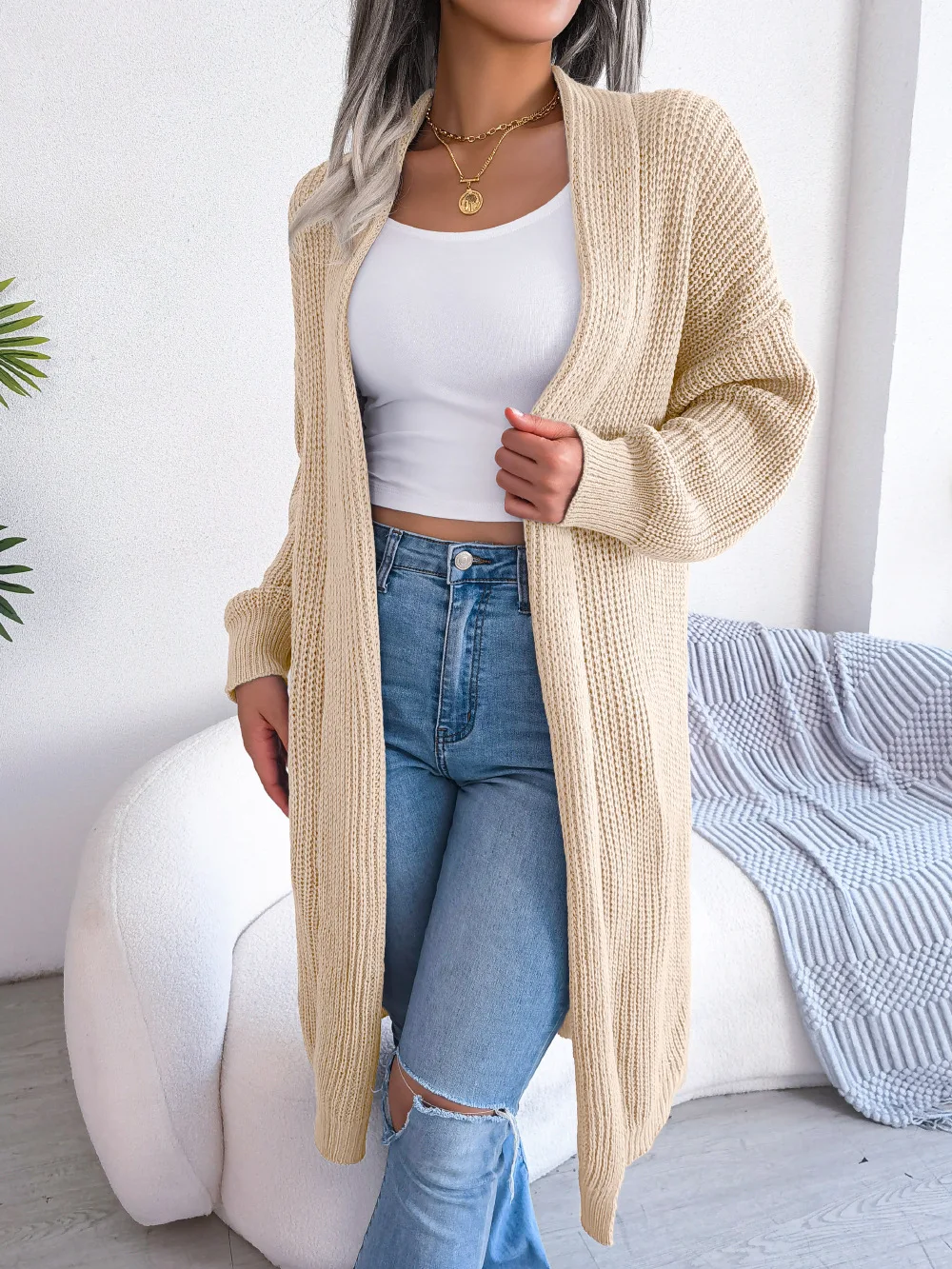 BSAY Kimono Style Knitted Cardigan Sweater Coat Women Long Sleeves